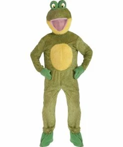 Frog Adult Costume. The princess will kiss this green amphibian too cute to be a toad Costume Includes: Plush frog mascot includes head with see-through eye mesh, jumpsuit and foot covers. One size fits most.Special Shipping Information: This item ships separately from other items in your order. This item cannot ship to a P.O. Box. This item may be subject to additional processing days.ITEM IS NOT ELIGIBLE FOR EXPEDITED SHIPPING