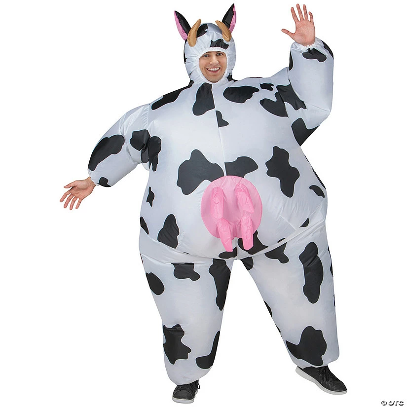 Now you can have your own farm animal themed costume party. Very Comical!Includes: Concealed fan inflates costume in seconds. Requires 4-AA batteries.Available Size:One Size fits most AdultsSocks are not included.Special Shipping Information: This item ships separately from other items in your order. This item cannot ship to a P.O. Box. This item may be subject to additional processing days.