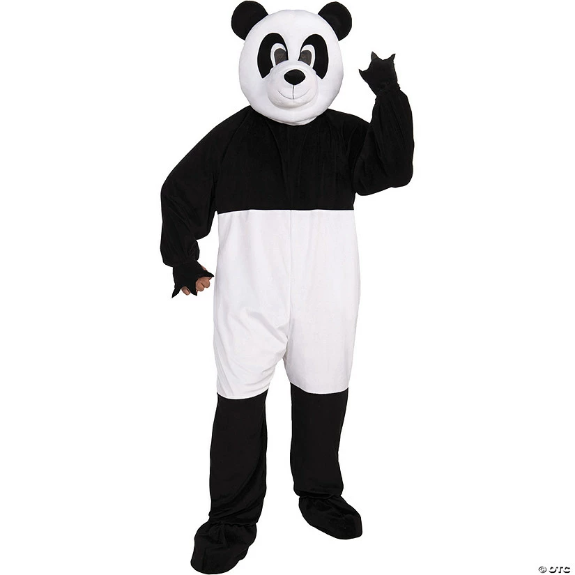 Panda Adult Costume. Giant Panda Asian endangered bear Costume Includes: Plush panda mascot includes head with see-through eye mesh, jumpsuit and foot covers. One size fits most.Special Shipping Information: This item ships separately from other items in your order. This item cannot ship to a P.O. Box. This item may be subject to additional processing days.ITEM IS NOT ELIGIBLE FOR EXPEDITED SHIPPING