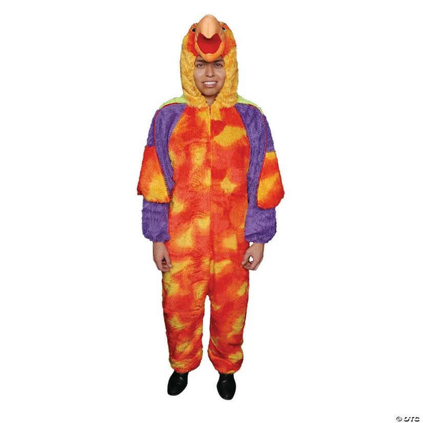 Nothing is better suited to putting you into the Halloween spirit then a Parrot Adult Costume. Whether you go to haunted houses, Halloween costume parties, or spend the night trick or treating with the kids, this red tunic and multicolored wings will be sure to put you into the mood for partying. The costume comes with a parrot head hood with a large open mouthed beak as well as black shoe covers to make it easy to complete the look. The bright orange, yellow and purple parrot costume is sure to get you noticed and you can flap and squaw as much as you like through the evening. Itβs not scary, but it will get you some laughs for sure. One size fits most. Includes:β’ Red tunic β’ Multi colored wingsβ’ Parrot head hoodβ’ Black shoe coversSpecial Shipping Information: This item ships separately from other items in your order. Imported.