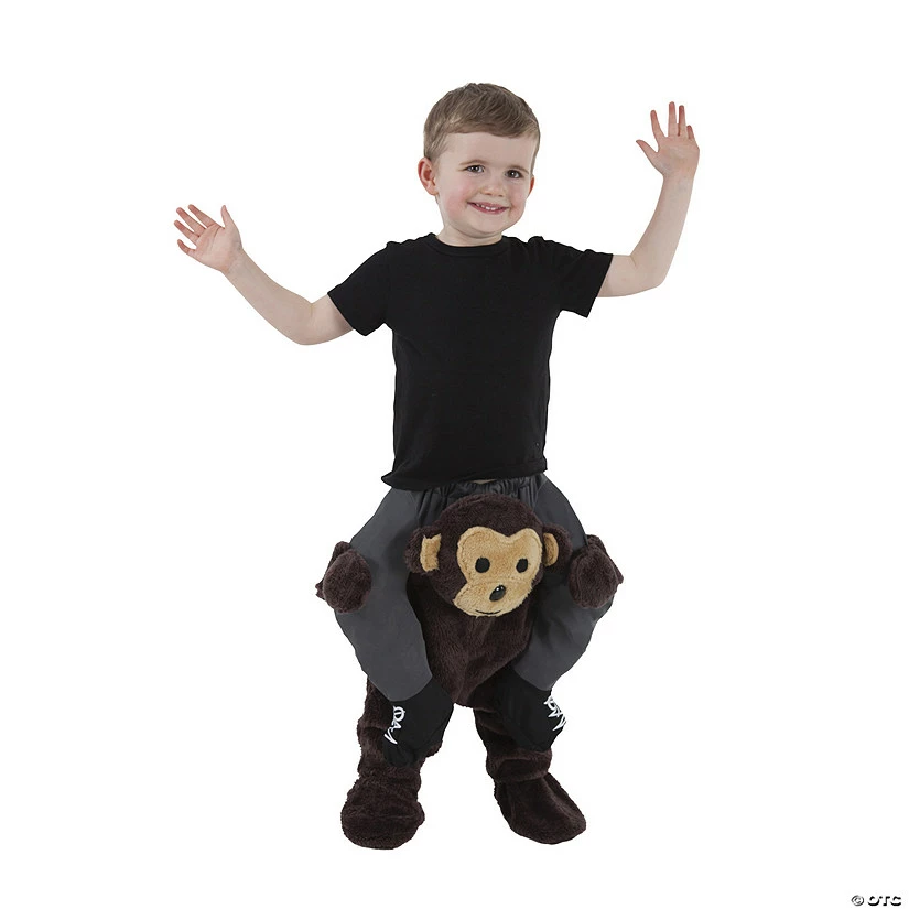 Monkey Piggyback Toddler CostumeYour toddler will have fun pretending he is getting a piggyback ride from his Monkey friend when he wears this cute piggyback illusion costume! Just stuff the false legs with paper or plastic grocery bags to give a realistic look. Toddlers will love the attention they get wearing this costume! Available Sizes: One size fits toddlers up to 4T. Black t-shirt is not included.Special Shipping Information: This item ships separately from other items in your order. This item cannot ship to a P.O. Box. This item may be subject to additional processing days.ITEM IS NOT ELIGIBLE FOR EXPEDITED SHIPPING