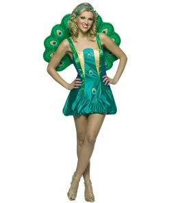 Lightweight Peacock Adult Costume. This bird is excited to strut her stuff! The colorful pouf dress is made from 100% polyester and has elastic on this hem. This lovely peacock costume includes the foam-backed tail with elastic shoulder straps and printed feather headband. Available Sizes: One size fits most adults 4-10. Shoes are not included.Special Shipping Information: This item ships separately from other items in your order. This item cannot ship to a P.O. Box. This item may be subject to additional processing days.ITEM IS NOT ELIGIBLE FOR EXPEDITED SHIPPING
